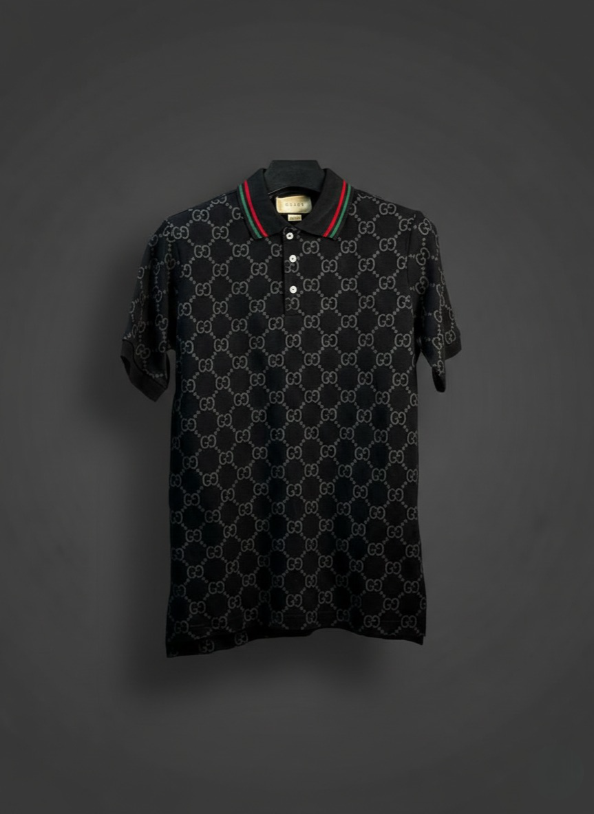 Elevate your casual wardrobe with this premium Gucci GG Monogram Polo Shirt. A perfect blend of luxury and comfort, this shirt features the iconic interlocking GG pattern throughout the fabric, making a bold fashion statement.